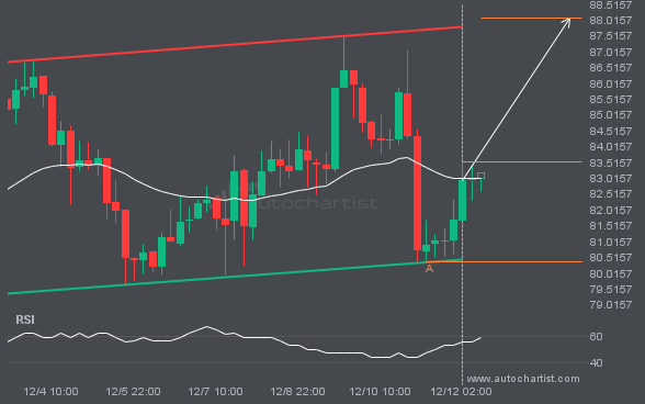 LTCUSD was identified around 83.53 after recently rebounding off the support on the 4 hour interval. Ultimately, the stock’s price action has formed a Channel Up pattern. This squeeze may increase the chances of a strong breakout. The projected move could take the price to around 88.0805.