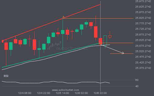 Channel Up pattern identified on NAS100 has broken through a support level, with price momentum continuing to move downward. This presents a solid trading opportunity, with the price expected to reach 25502.9658 in the next 12.