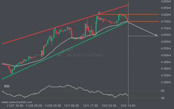 This trade setup on NGC/USD formed after a period of consolidation, during which the price moved mostly sideways before choosing a longer-term direction. Following the bearish breakout through support, the price could move toward 4.6522.
