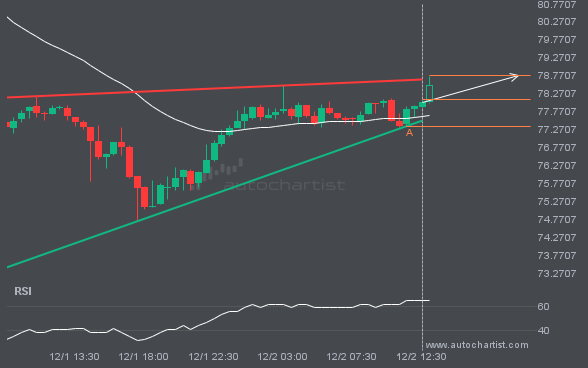GBPJPY is moving toward a resistance line it has tested many times. It has retraced from this line before, so it’s unclear whether it will break through or rebound again. If GBPJPY continues on its current trajectory, it could reach 207.7151 within the next 3 days.