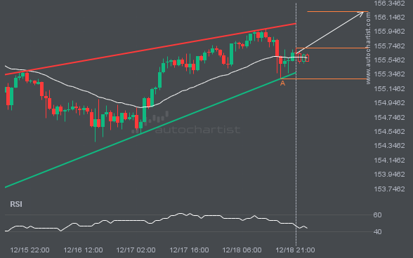 A Rising Wedge pattern was identified for USDJPY at 155.7115, suggesting it may move toward the resistance line at 156.2232. It may break through that line and continue the bullish trend, or reverse from it.