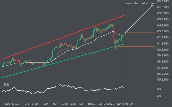 An emerging Channel Up pattern has been detected for XAGUSD on the 1 hour chart. There may be a move toward 67.7226 in the next few candles. Once it reaches the resistance, it may continue its bullish run or revert to current price levels.