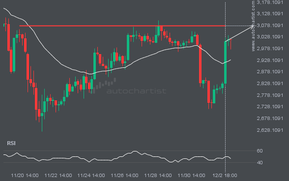 ETHUSD is heading toward 3075.0200 and could reach this level within the next 3 days. It has tested this level numerous times in the past, and this time could be no different, ending in a rebound rather than a breakout. If a breakout does not occur, we may see a retracement back to current levels.
